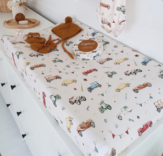 Fitted Bassinet Sheet/Change Pad Cover - Vintage Cars