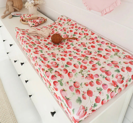 Fitted Bassinet Sheet/Change Pad Cover - Strawberry