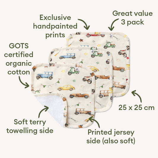 Organic Wash Cloths - 3 Pack - Vintage Cars