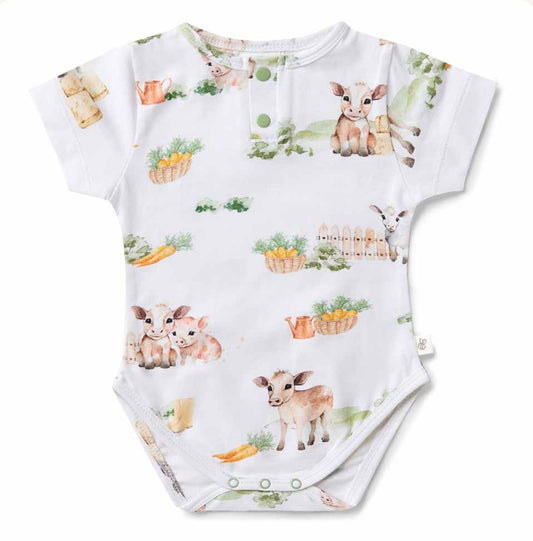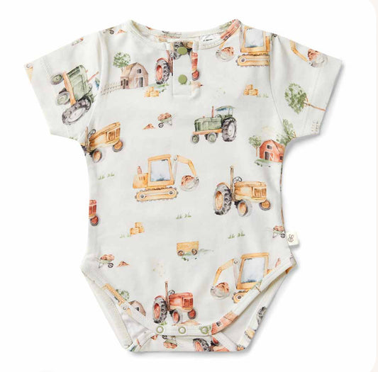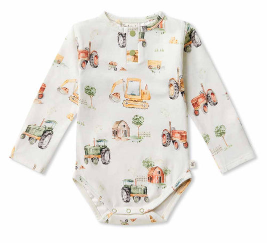 Long Sleeve Organic Bodysuit - Diggers & Tractors