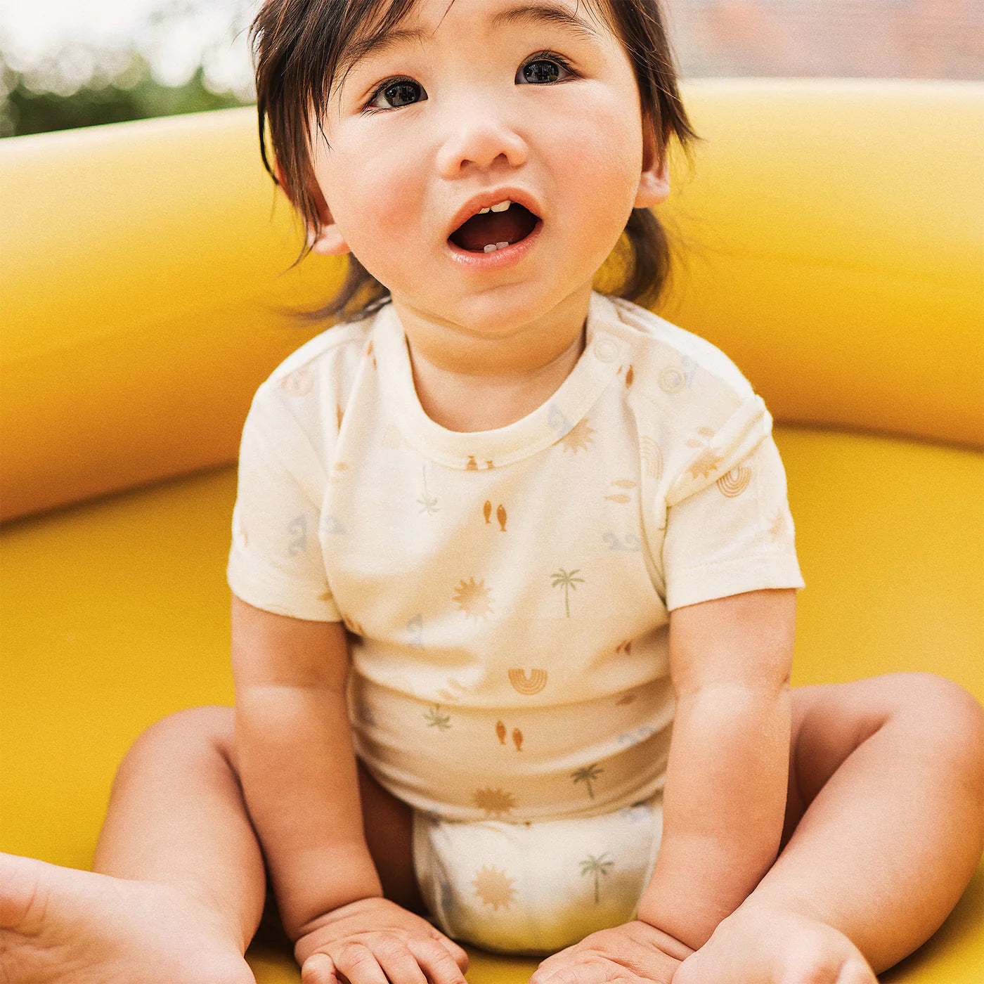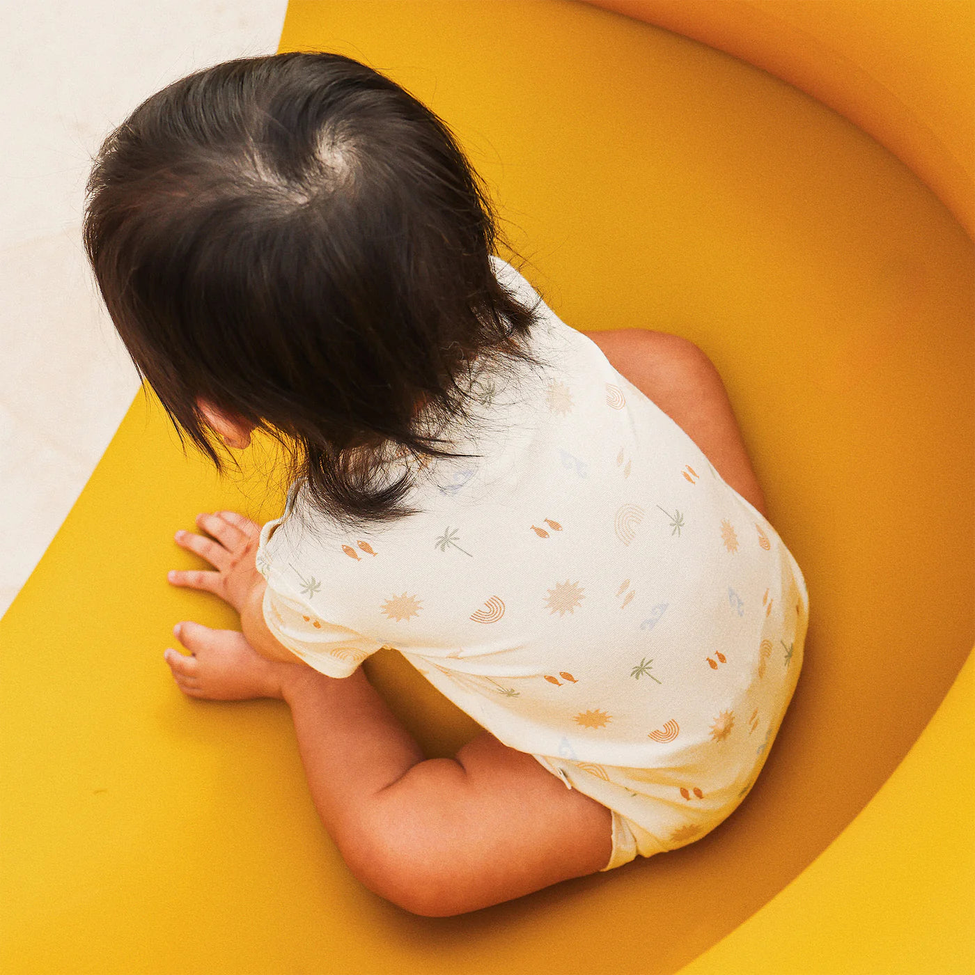Learn and grow, littlest love. Our versatile comfy bodysuit is perfect for layering, featuring snap openings at the neck and crotch for easy changes. Made with our signature sustainable viscose, ensuring it is kind on delicate newborn skin.