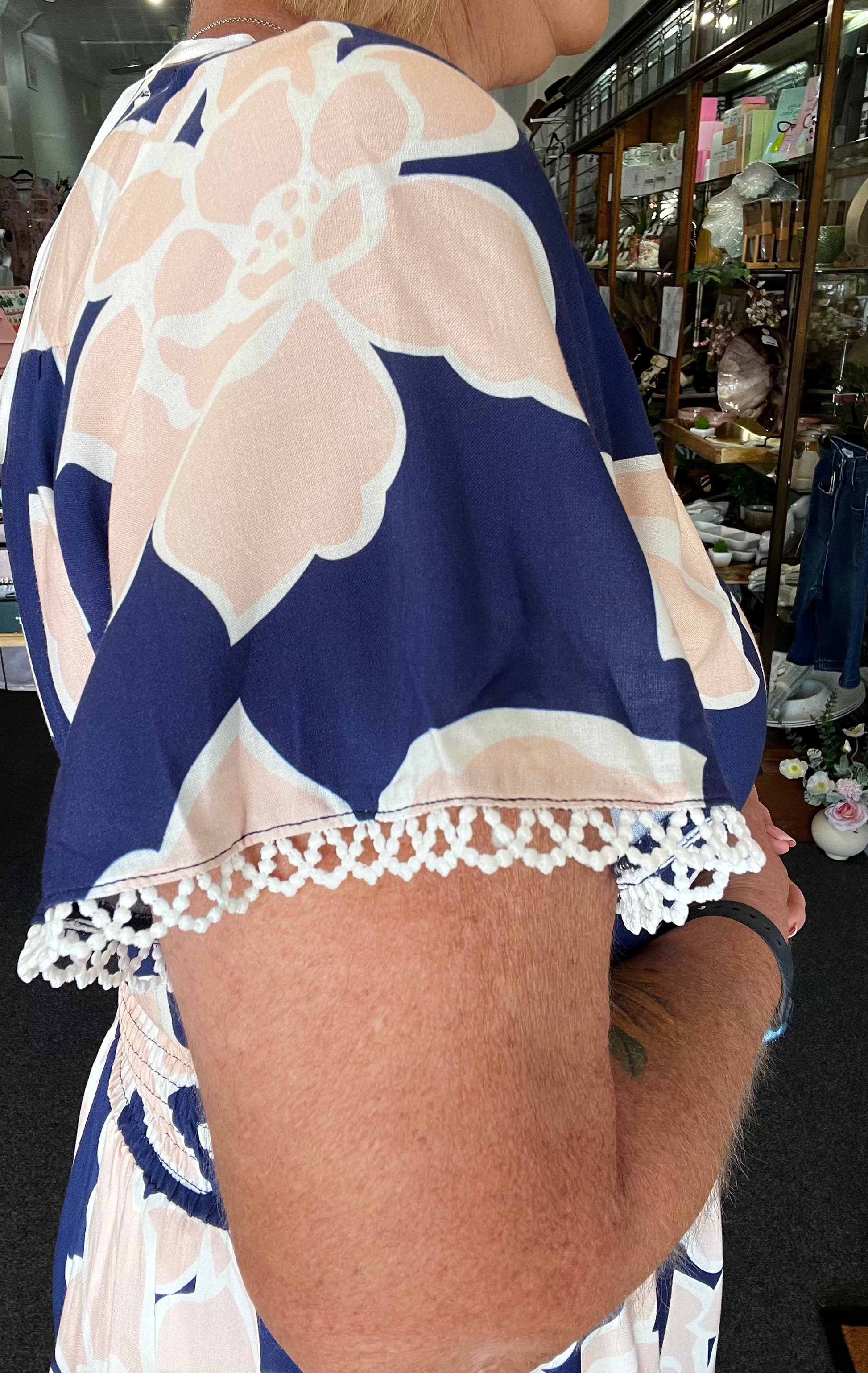 The Esme Mini Dress features a flattering V neckline and button detailing at the bust. The elastic waist provides a comfortable, customizable fit, while the delicate lace details on the sleeves and tiered bottom add an elegant touch. Made of 100% rayon, this dress is lightweight and flowy, perfect for any occasion.