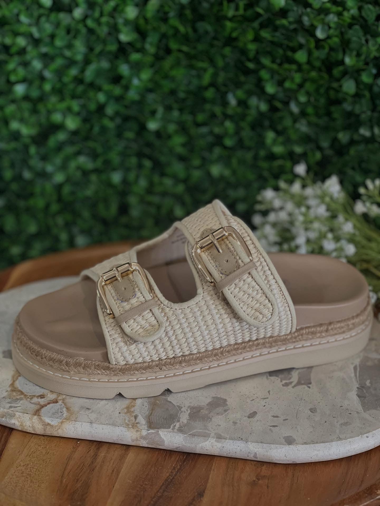 Step into effortless summer style with these chic raffia double buckle sandals. Designed in Australia and crafted in Vietnam, they combine comfort and versatility with a touch of luxury.