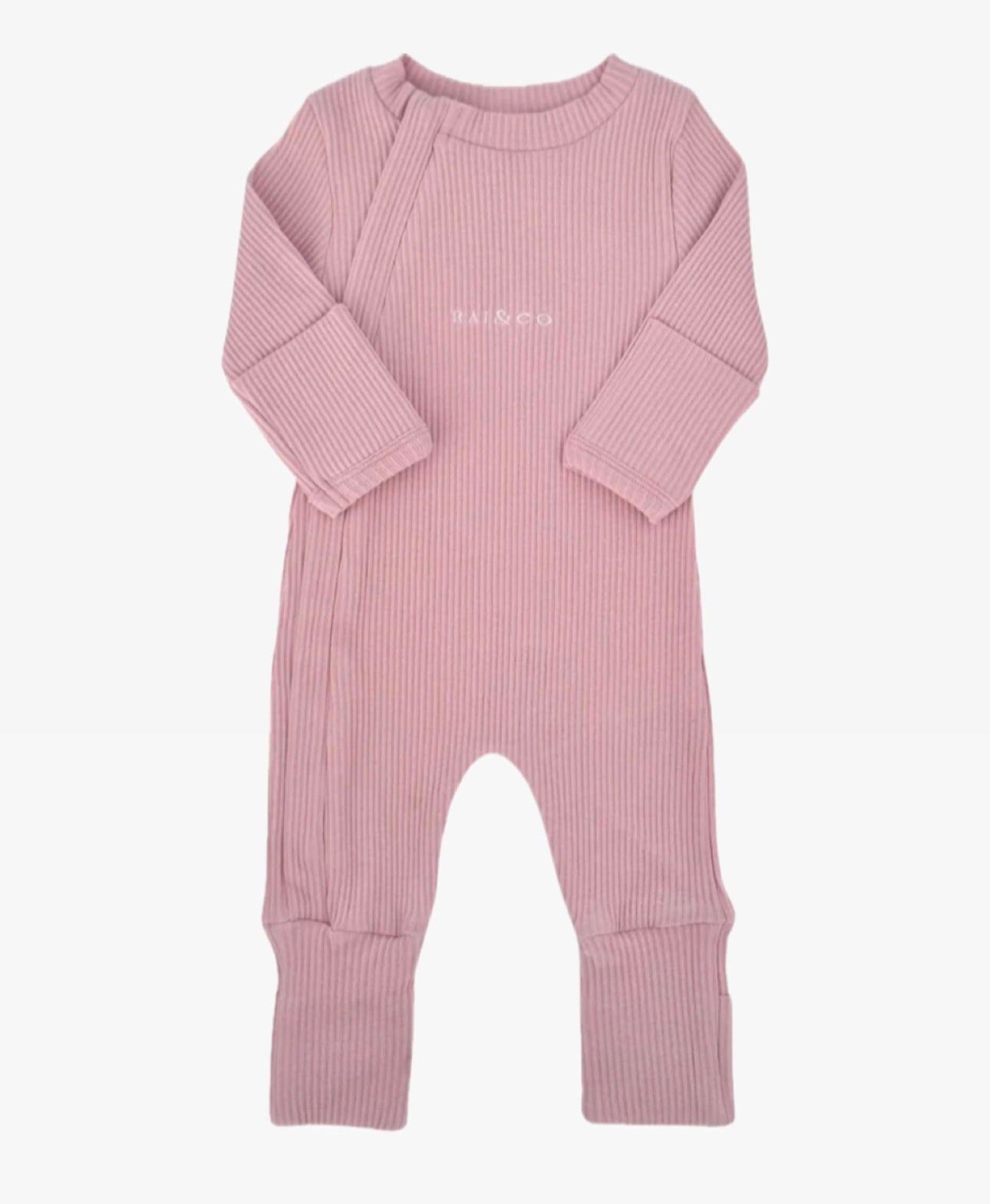 This thick embroidered ribbed cotton jumpsuit allows for ease of movement. Designed with a higher neck and windproof feet for those cooler winter months. The hidden side two-way zip allows for those easy nappy changes without your little babe getting cold.
